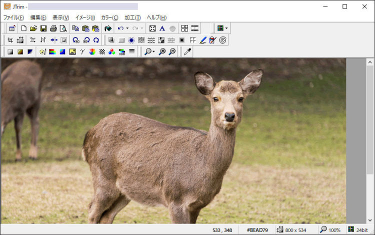 JTrimは、昔ながらのメニューバーとツールバーのデザインを持つ、画像加工ソフトとしては定番のフリーソフトです。