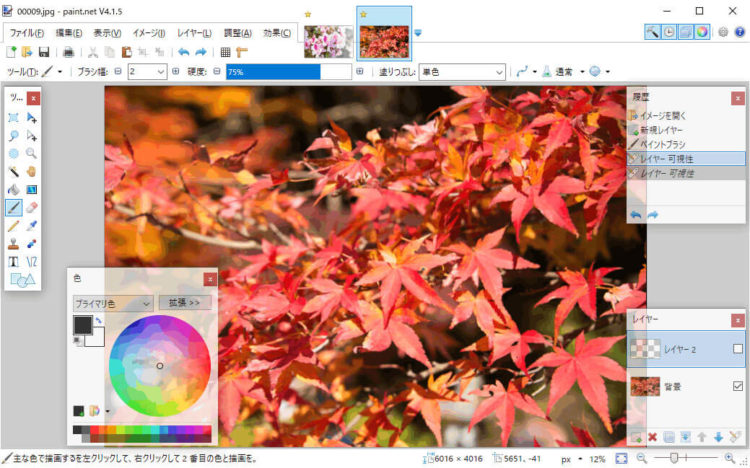 Paint.netは、MDI形式(一つのウィンドウの中に複数のウィンドウが格納されている形式)のフリーの画像加工ソフトです。