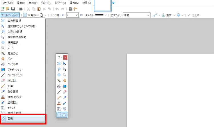 その後、「ツール」の一つ右のメニューが「図形」を選択できるメニューに切り替わります。