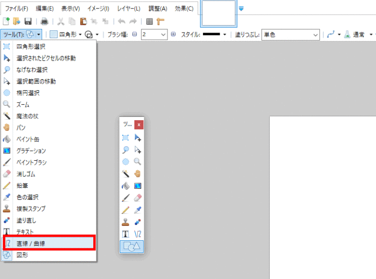 「線」を書きたい時は、「ツール」から「直線 / 曲線」をクリックします。