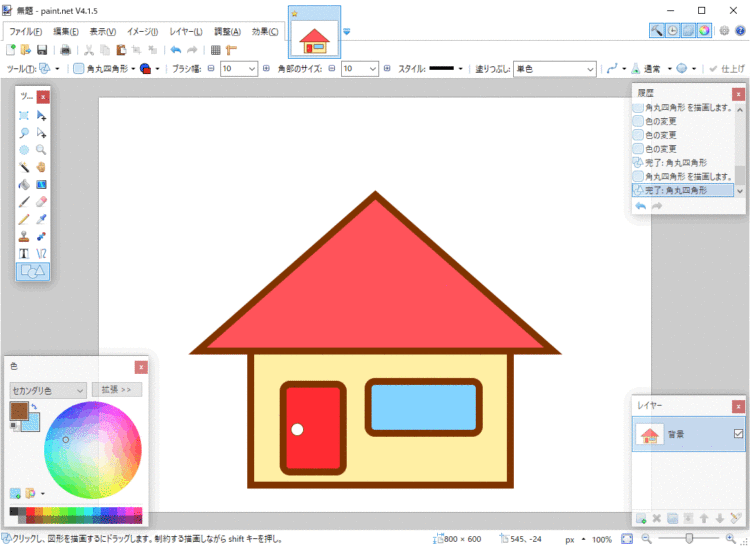 Paint.netでは、「矢印、線、矩形」を使ったちょっとしたイラストを作ることができます。