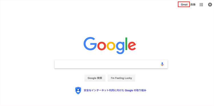 Google検索画面のトップページから、右上の「Gmail」をクリックしてGmailにアクセスしましょう。