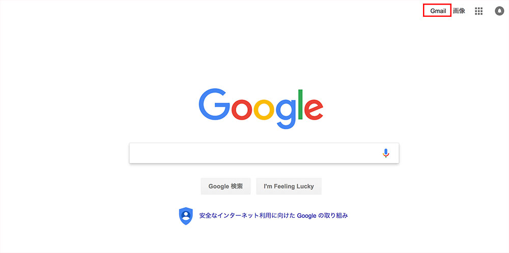 Google検索画面のトップページから、右上の「Gmail」をクリックしてGmailにアクセスしましょう。