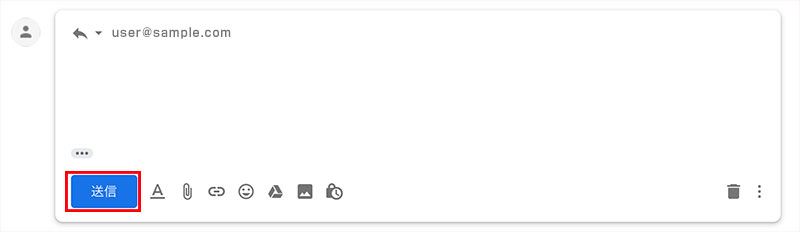 送信先のメールアドレス、件名、本文を入力して「送信」ボタンをクリックすると、送信されます。