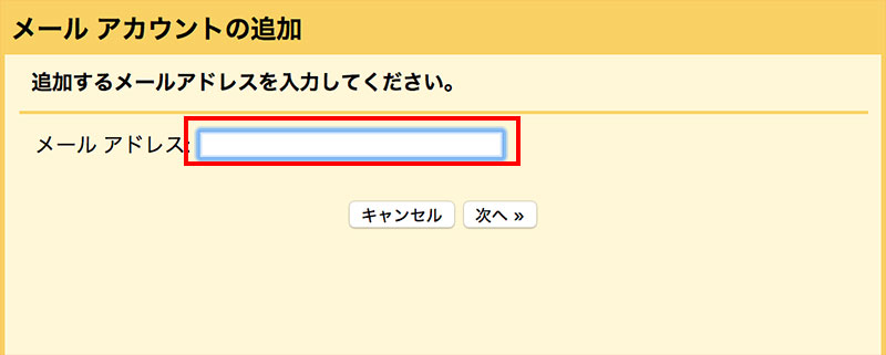 ポップアップ表示された画面にメールアドレスを入力して、「次へ」ボタンをクリックします。