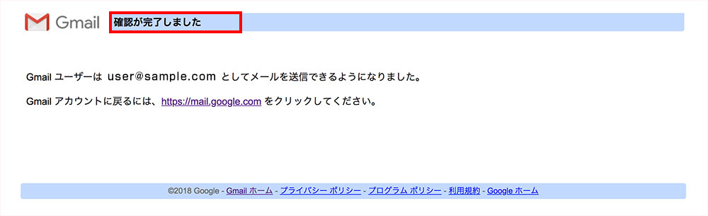 「確認が完了しました」と画面に表示されれば、設定完了です。