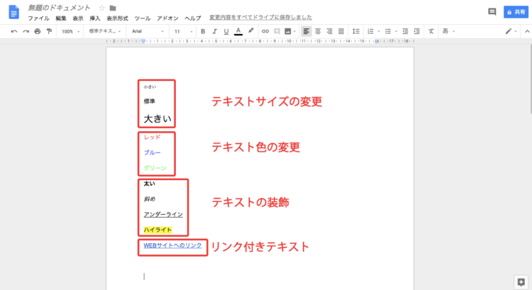 Googleドキュメントは、文章を打つだけでなく、文字の大きさを変えたり色を変えたりと様々な機能を搭載しています。具体的な機能は、以下の通りです。