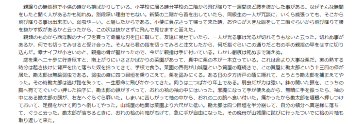 まず一つ目は、夏目漱石の「坊っちゃん」の冒頭部分の文章が記載されているgifファイルです。