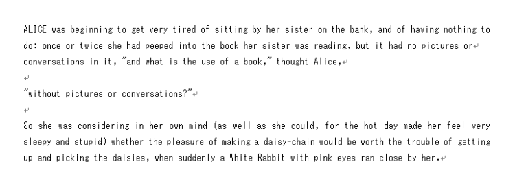 英語の文章も準備しました。「不思議な国のアリス」の冒頭部分です。