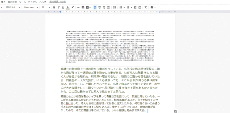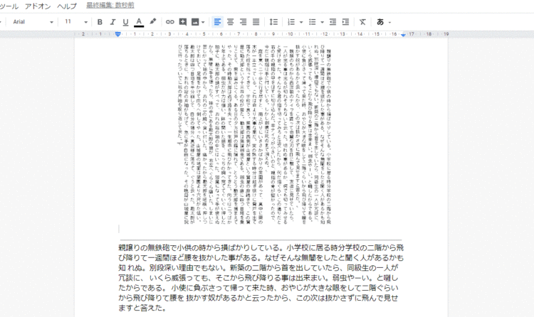 画像ファイルからテキストファイルへと変換が完了すると、自動的に新規のGoogleドキュメントファイルが作成されます。