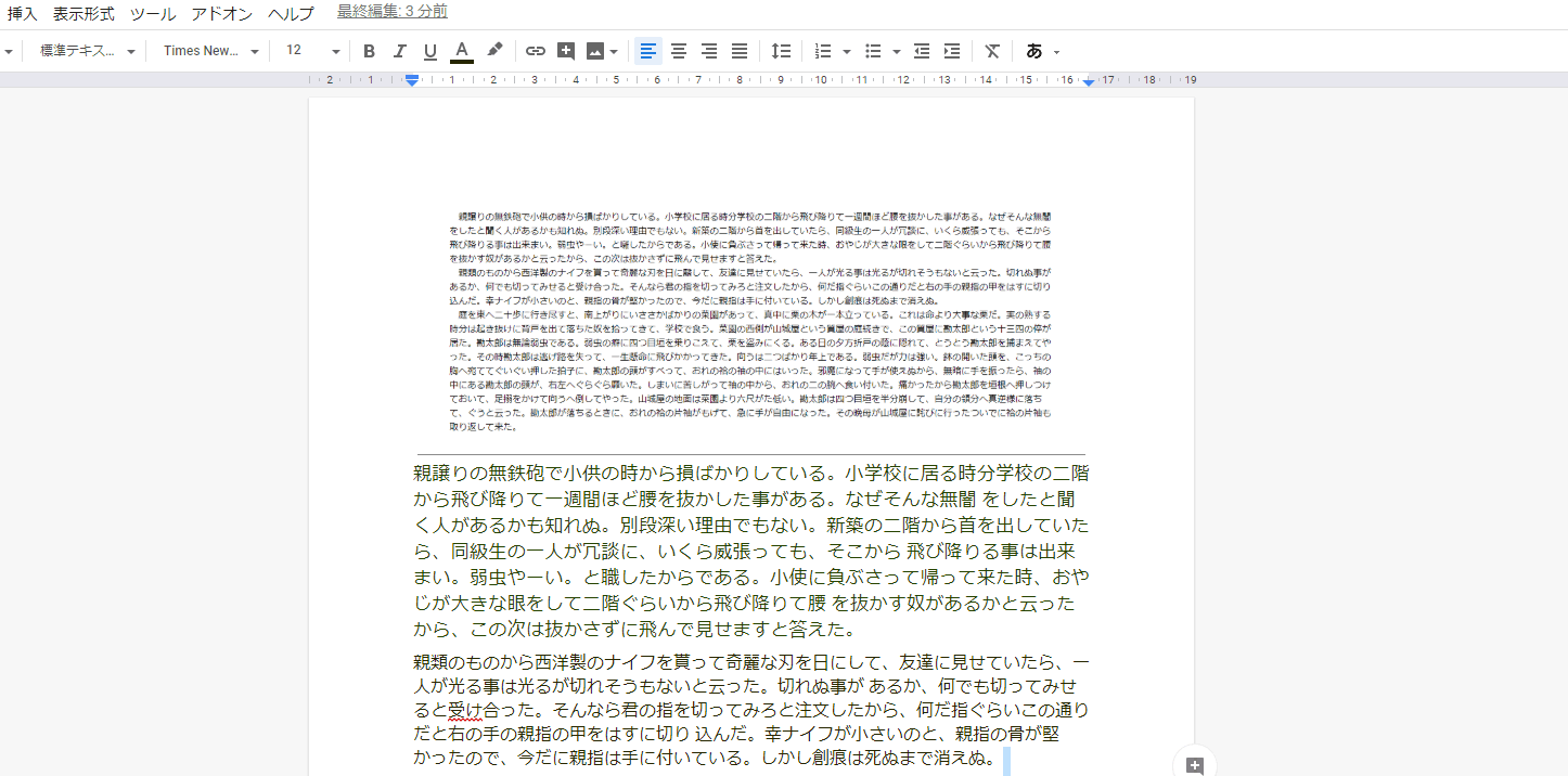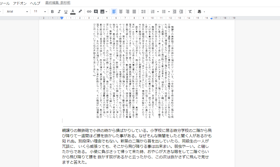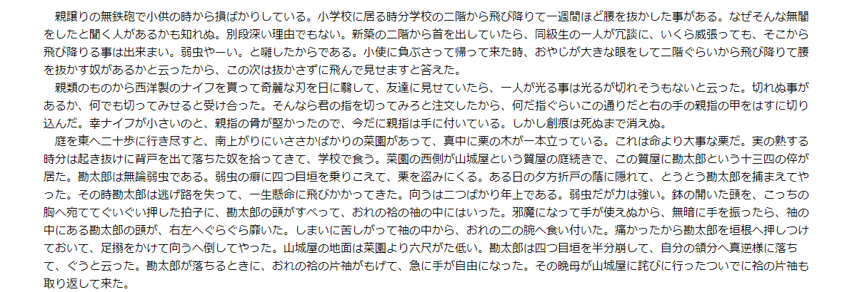 最初に、横書きの「坊っちゃん」の画像ファイルの文字起こしを行いましょう。