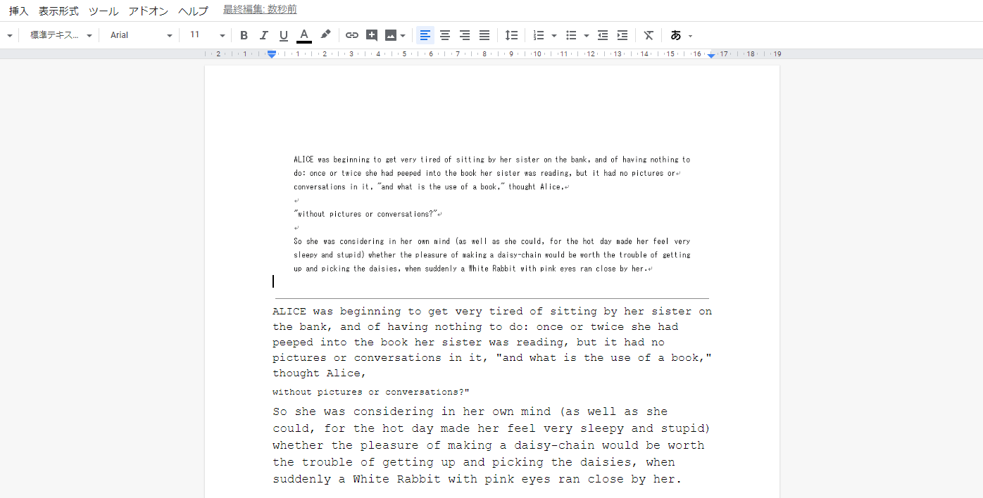 英語の文章も準備しました。「不思議な国のアリス」の冒頭部分です。