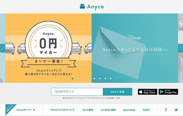 「”乗ってみたい”に出会えるカーシェアアプリAnyca(エニカ)は、個人間でクルマをシェアする、新しいカーシェアサービスです。」
