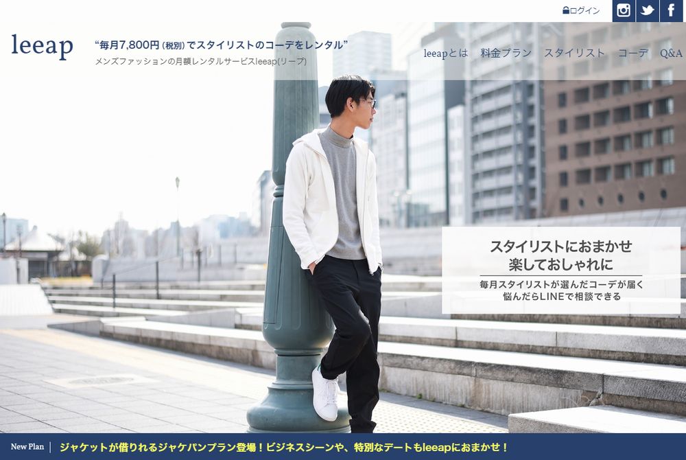 「“毎月7,800円(税別)でスタイリストのコーデをレンタル” メンズファッションの月額レンタルサービスleeap(リープ)」
