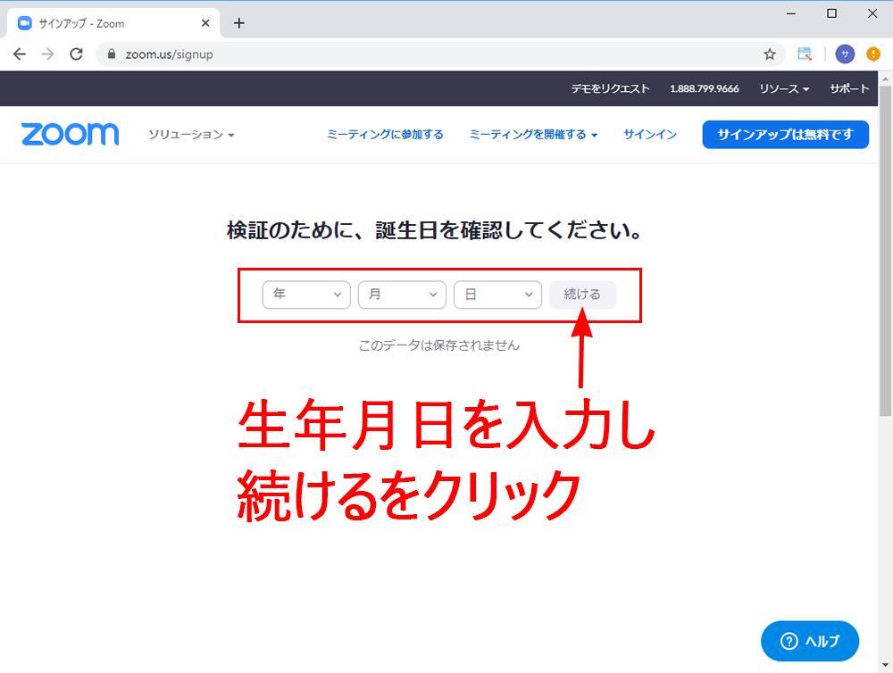 生年月日の入力を求められるので、入力し「続ける」ボタンをクリックします。