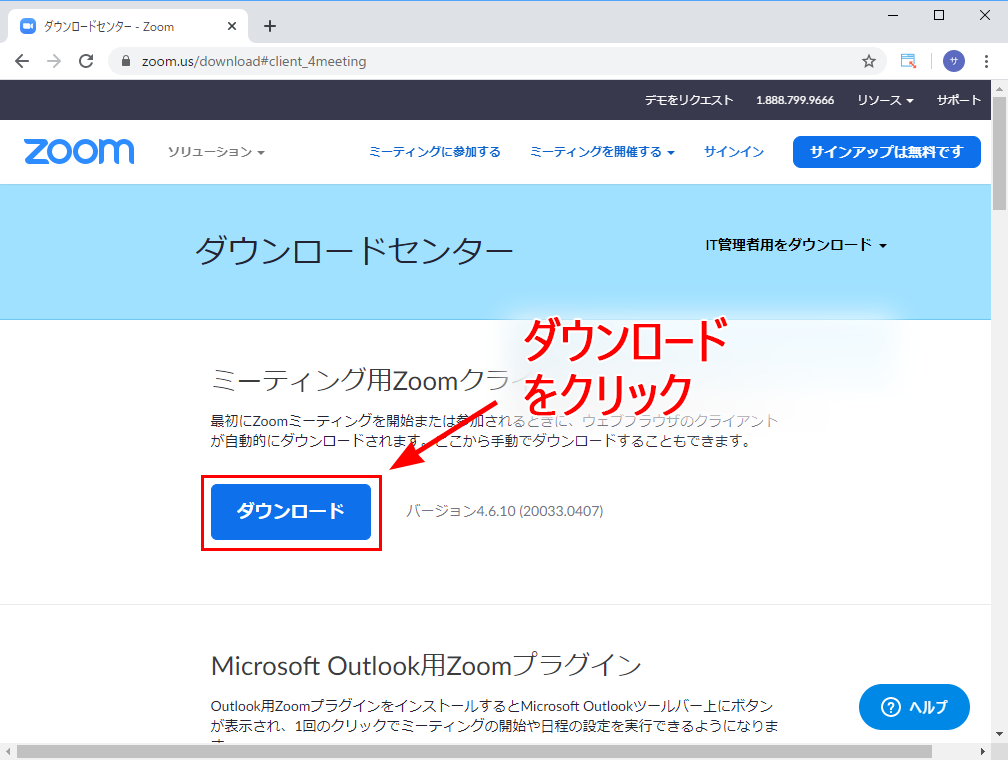 こちらのサンプルでは、Windowsデスクトップパソコン用のZoomを、ダウンロードします。