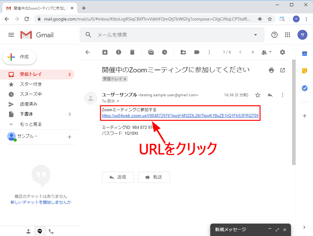 ここでは、メールで送ってもらった場合の参加の流れを見ていきます。