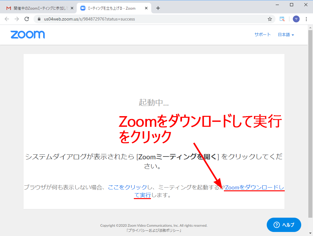 下の方にあるリンク「Zoomをダウンロードして実行」をクリックしてください。