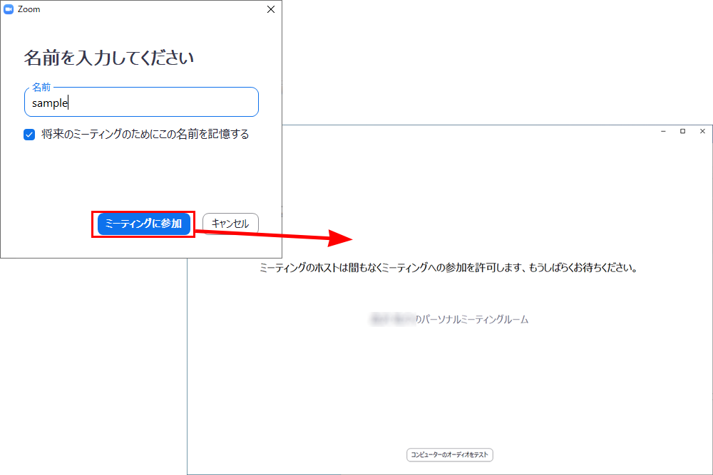 その場合は主催者が許可すると、ミーティングへ参加することができます。