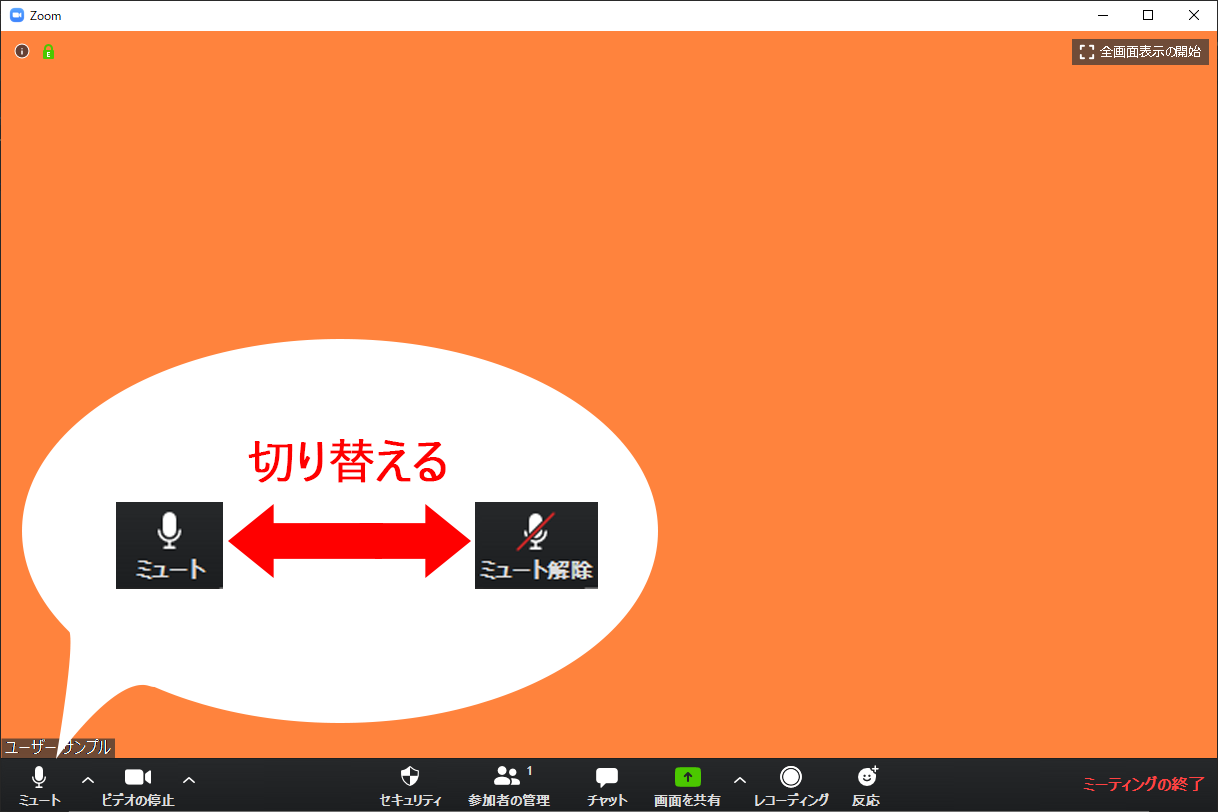 自分のマイクをミュートにする