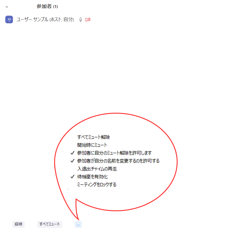ミーティング開始時、全ての参加者はマイクがミュートの状態になります - 参加者に自分のミュート解除を許可します