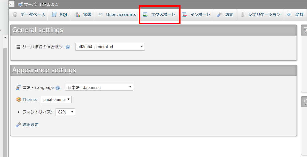 phpMyAdminを使ってデータベースをバックアップする
