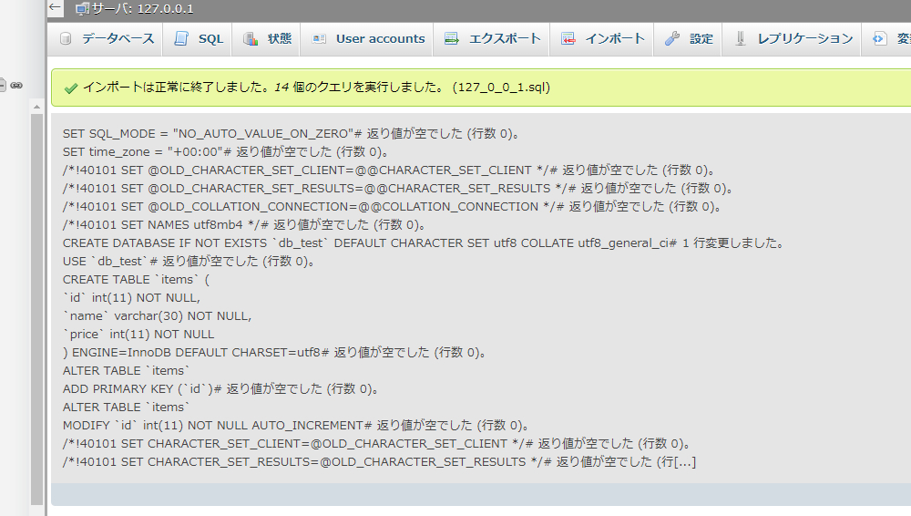 phpMyAdminを使ってデータベースをリストアする