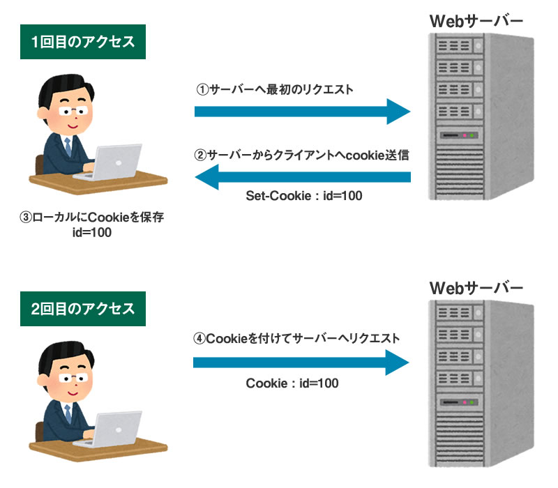 Cookieとよく似た機能を持つものに、「セッション」があります。Cookieはサーバーがリクエスト者(閲覧者)に対して発行するデータです。受け取ったデータは、Cookieという形でクライアント(閲覧する側)が保存します。