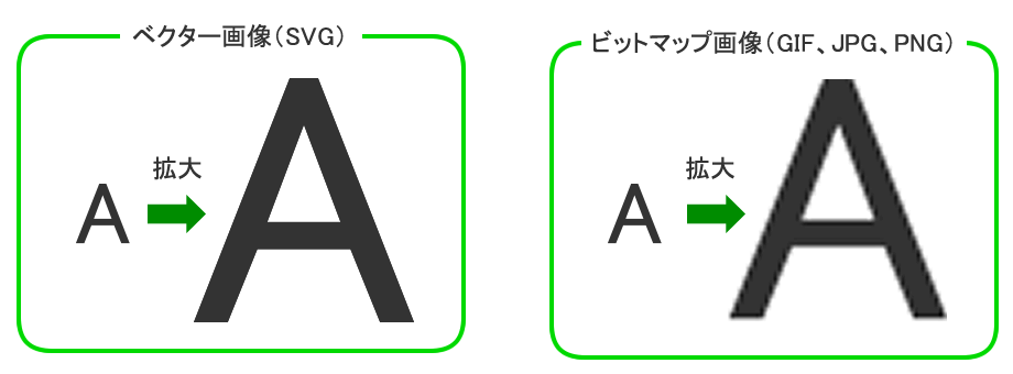 - SVGは、拡大や縮小をしても綺麗な画像のまま表示される。