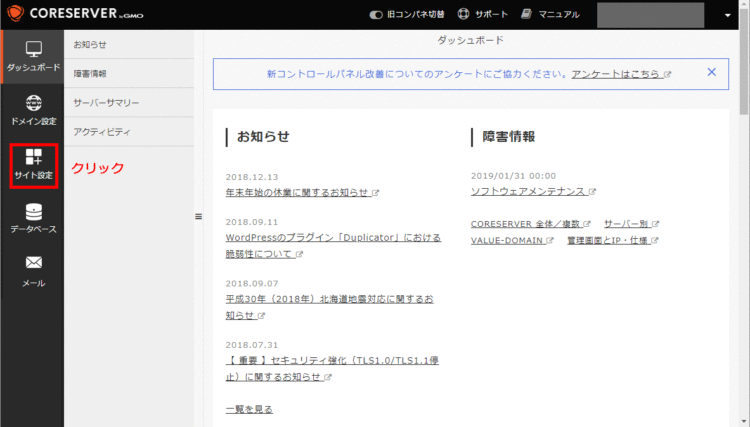 コントロールパネルのスクリーンショットを使って、コアサーバーにWordPressをインストールする方法を紹介します。