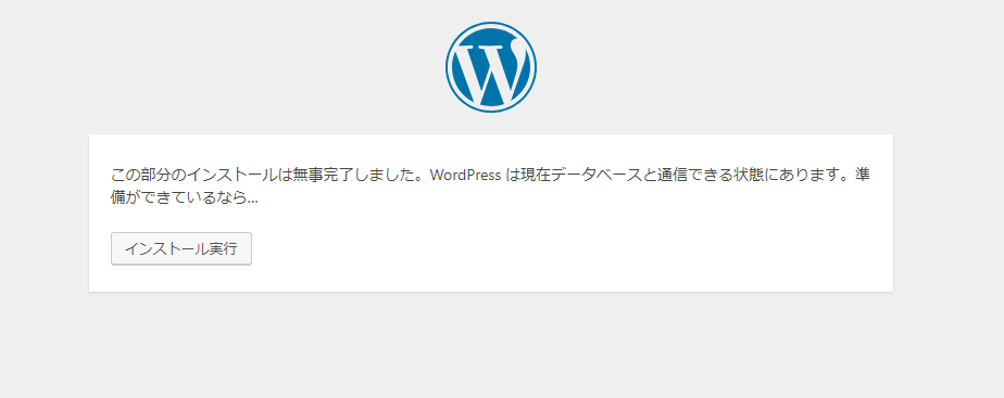 データベースが適切に設定されていると、上記のような画面になります。問題なければ「インストール実行」ボタンをクリックしましょう。