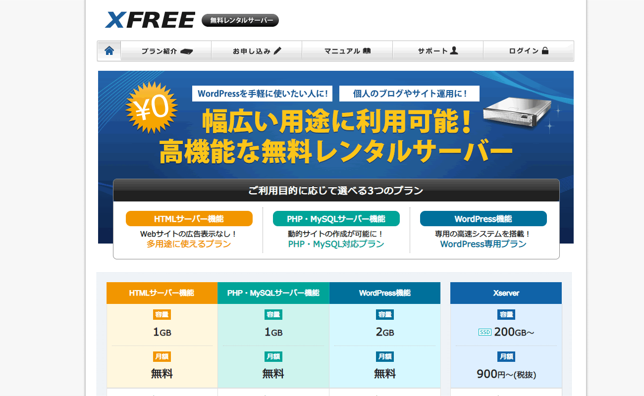 • XFreeは、WordPressが動作する無料レンタルサーバーでは、当サイトイチオシ。
