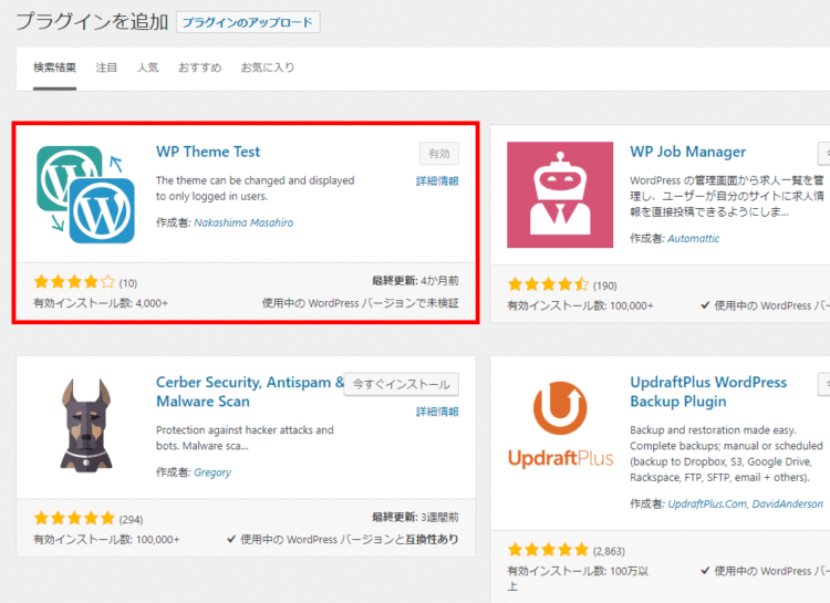 - 「Theme Test Drive」プラグインで事前にテーマをチェックできる。