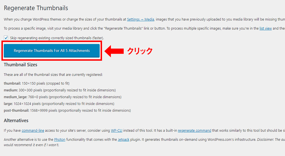 メディア画像を再生成する「Regenerate Thumbnails」プラグイン