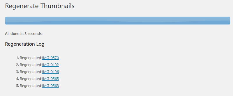 すべての画像の再生成が完了すると、「All done in XX seconds」とメッセージが表示されます。