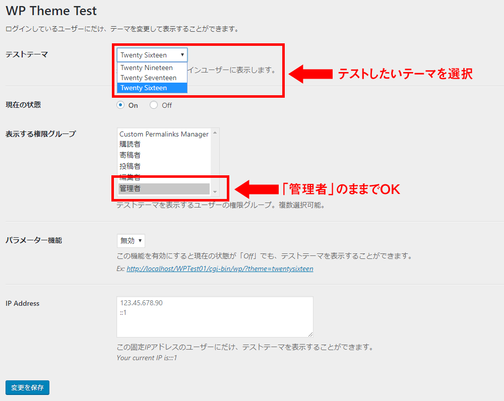 そして、できればテーマを変更する前に、本番環境と同じ構成のテスト環境を作っておいて、いったんそこでテストすることをおすすめします。