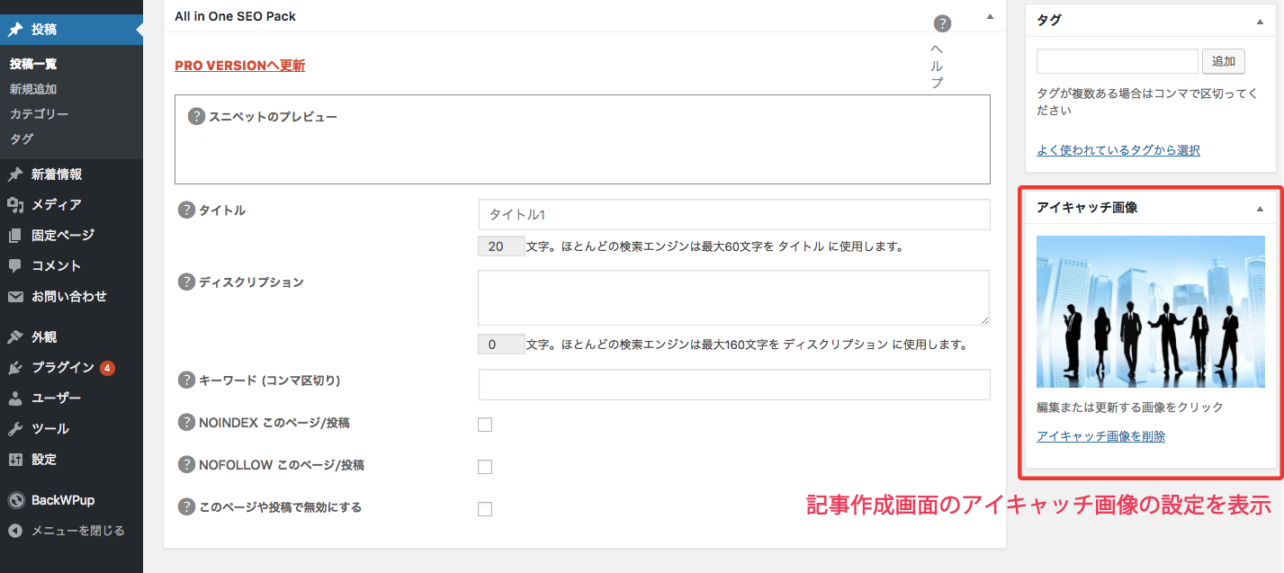 このコードを記述すると、記事にアイキャッチ画像を設定できるようになります。