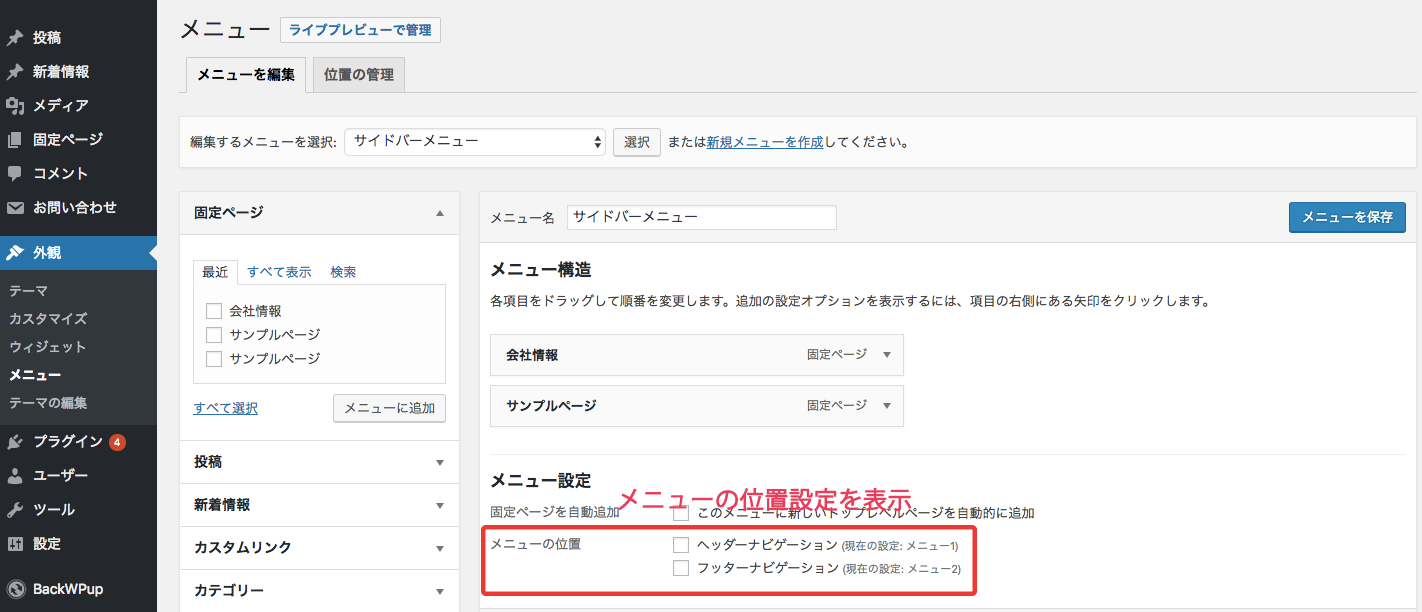 functions.phpで設定していると、管理画面上で直感的にサイドバーを構築したりメニューを設定したりと、様々な設定・管理が簡単にできます。