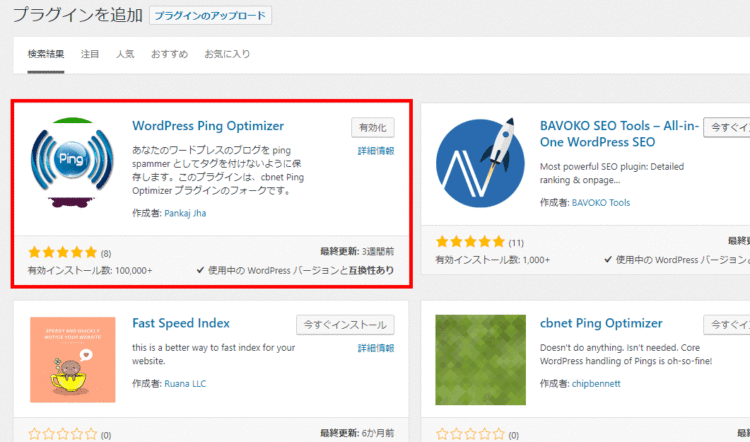 「WordPress Ping Optimizer」は、WordPressの管理画面からインストールできます。