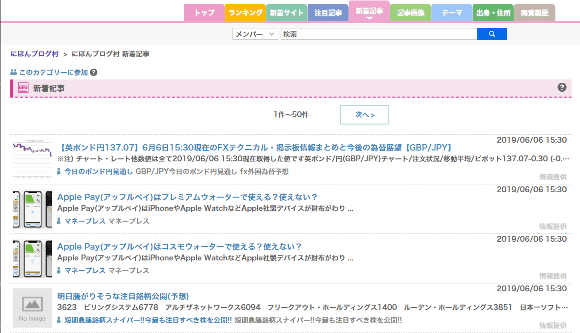 上の画像は、「にほんブログ村」の新着ブログ一覧のページです。