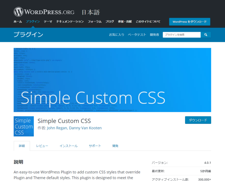 「Simple Custom CSS」は、WordPressのテーマのテンプレートを直接編集せずに、テーマのCSS(スタイルシート)をカスタマイズできるというものです。