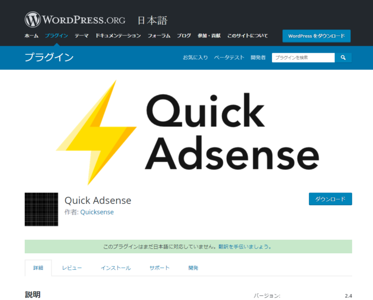 Quick Adsenseは、管理画面「プラグイン」→「新規追加」で検索して、インストールできます。