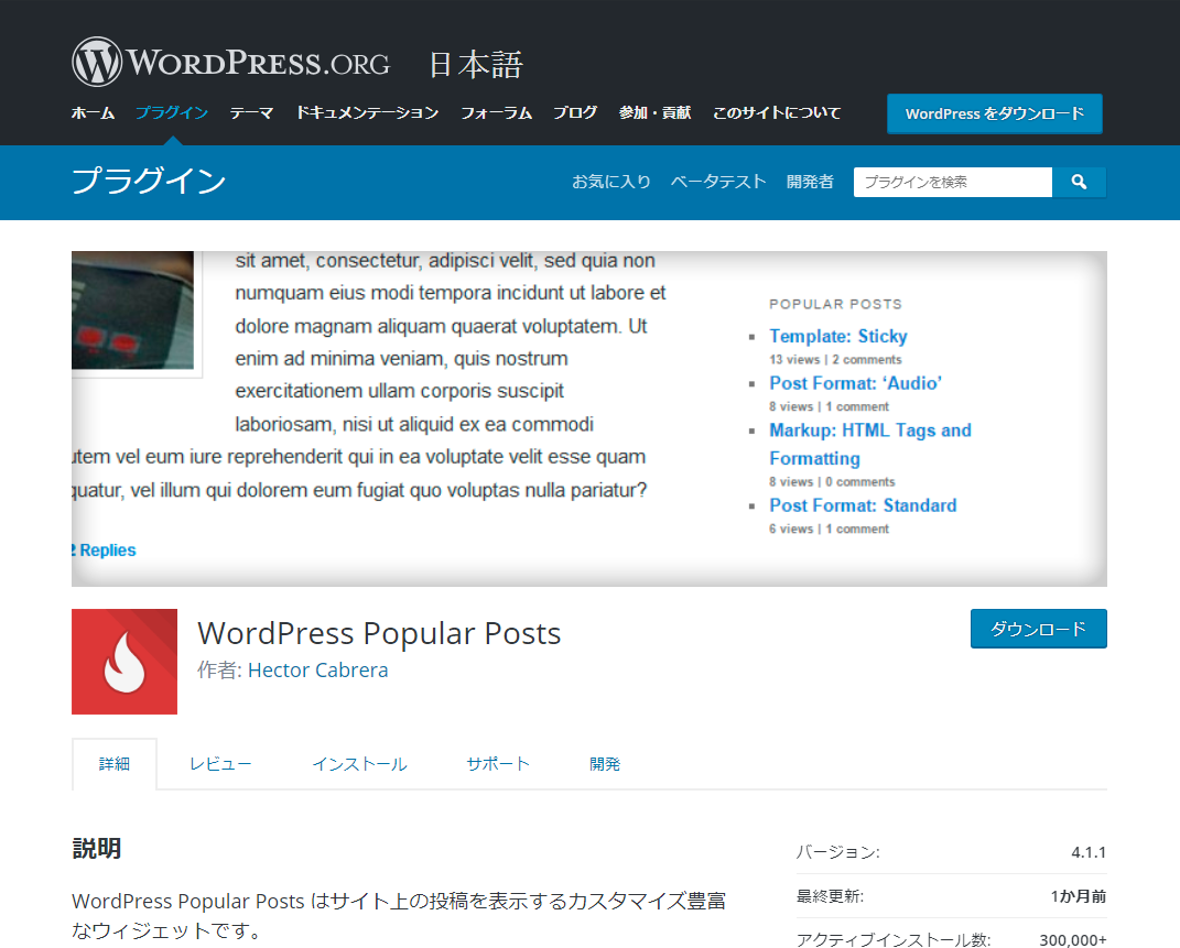 プラグインの例ですが、例えば「WordPress Popular Posts」というプラグインがあります。このプラグインは、ウィジェットエリアという場所ならどこでも配置できます。