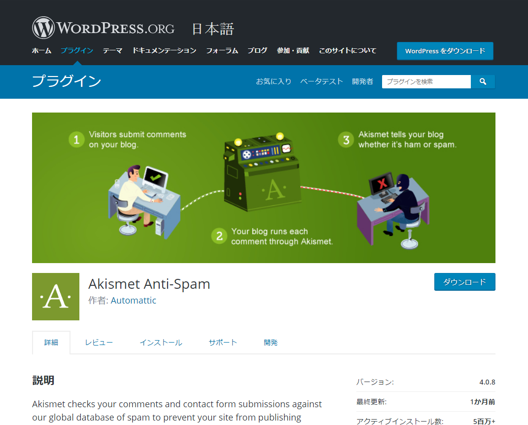 またこれはデフォルトで入っている場合が多いプラグインなのですが「Akismet Anti-Spam」というプラグインがあります。