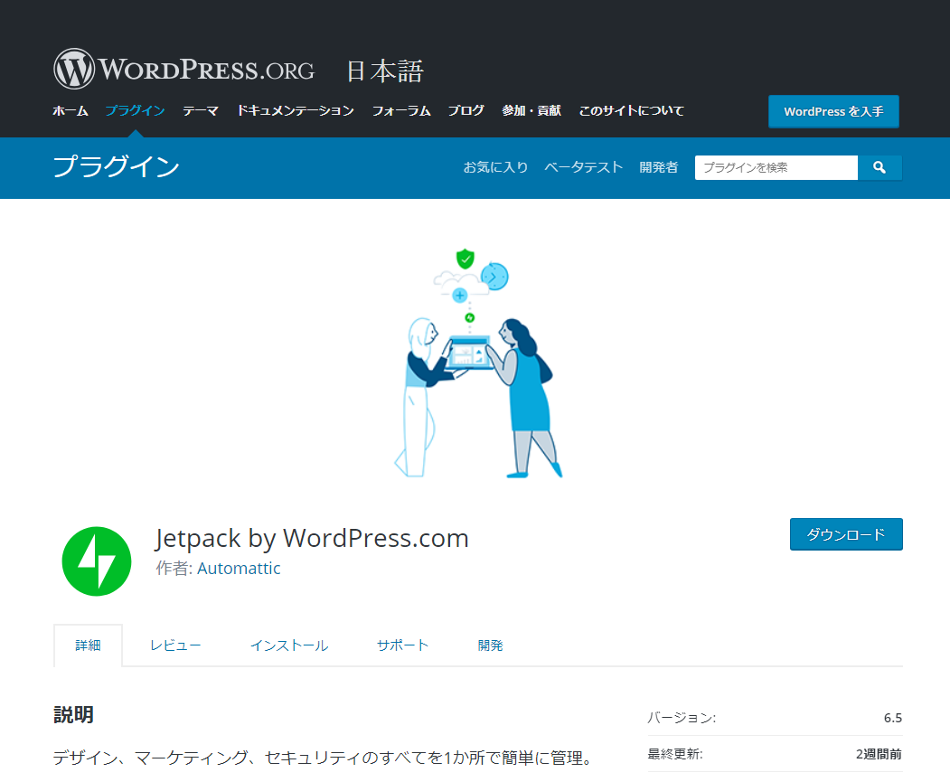 Jetpackは、WordPress公式プラグインであり、デザイン、マーケティング、セキュリティの全てを一括で管理することができるプラグインです。どうしてもGoogle Analyticsを使いたいなど、競合するプラグインを入れる予定がないのなら、有用なプラグインです。
