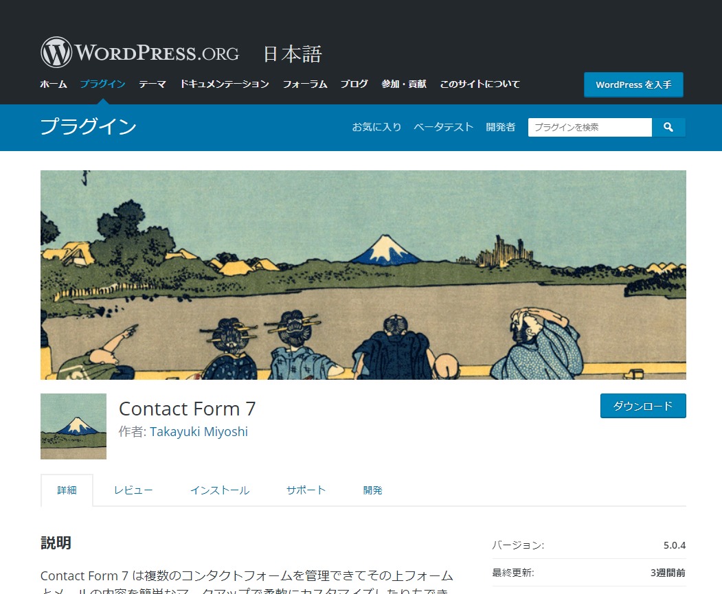 Contact Form 7は、管理画面「プラグイン」→「新規追加」で検索して、インストールできます。