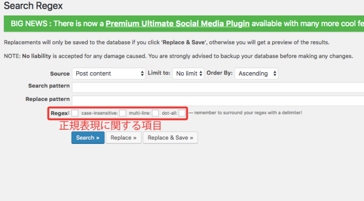 文字列を一括置き換えするプラグインで、一番有名なのが「Search Regex」です。文字列の一括置き換えなどではよく使われています。