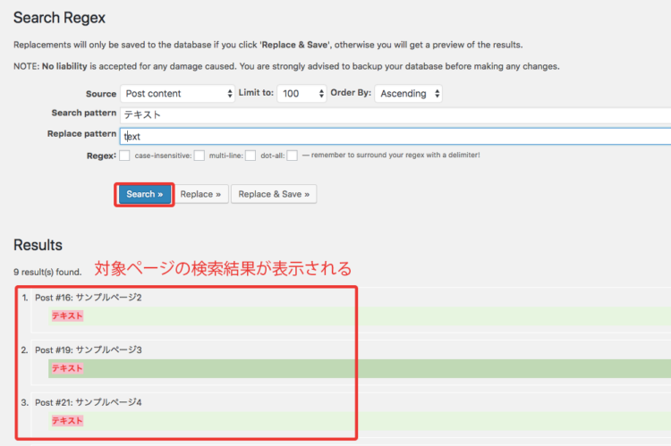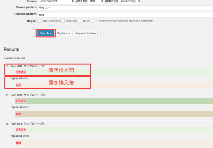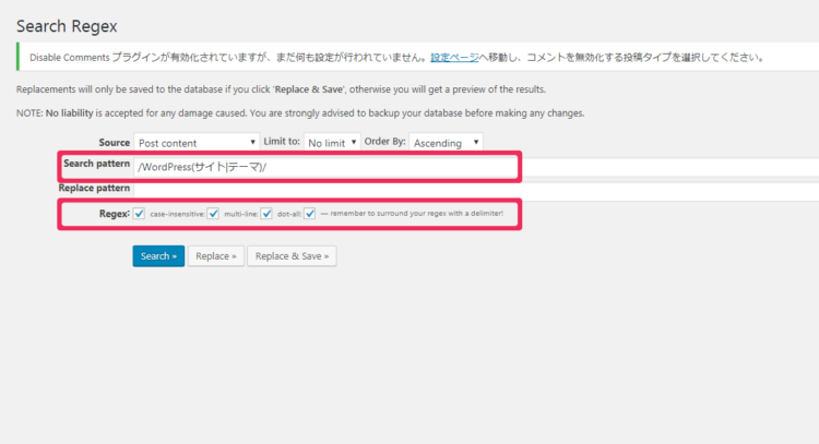 「Regex欄」以降の設定をしなくても、十分に扱えるプラグインなので、記事の修正やSSL化の際に有効活用してみましょう。