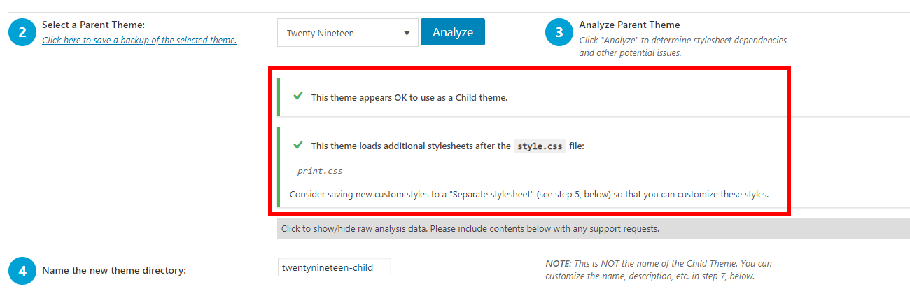 「4.Name the new theme directory」には、子テーマを保存するフォルダ名を入力します。