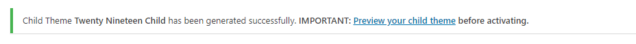 子テーマの作成が完了すると、このようなメッセージが表示されます。
